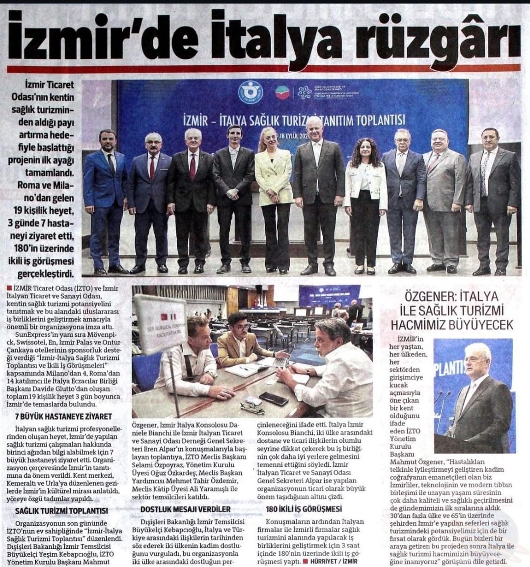 Questo importante meeting si è svolto nella città di Smirne e, oltre ad essere promosso dalla Camera di Commercio Italo Turca di Smirne, ha visto la partecipazione e promozione da parte del Console Italiano a Smirne. Grande interesse è stato dato alla presenza della Federazione Parafarmacie Italiane e al ruolo che i farmacisti di Parafarmacia possono svolgere nel turismo medicale.