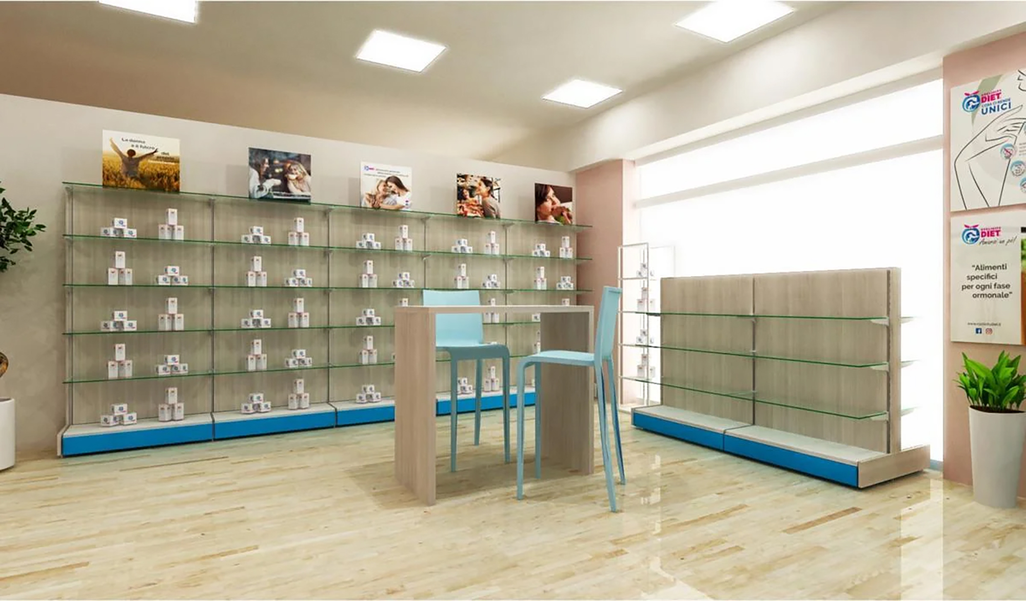 Produciamo, in 3 settimane, arredamenti per parafarmacie, allestendo punti vendita di successo.